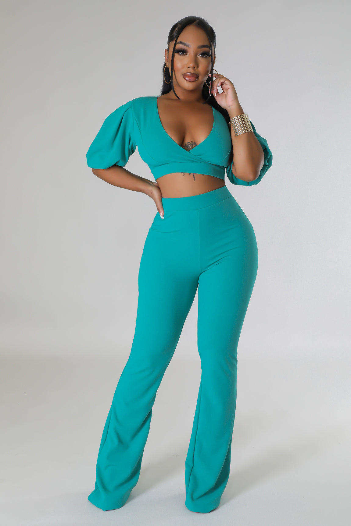 * Ensemble deux pièces* Haut court* Col en V* Manches courtes*Pas de fermeture* Pantalon taille haute* Jambes...