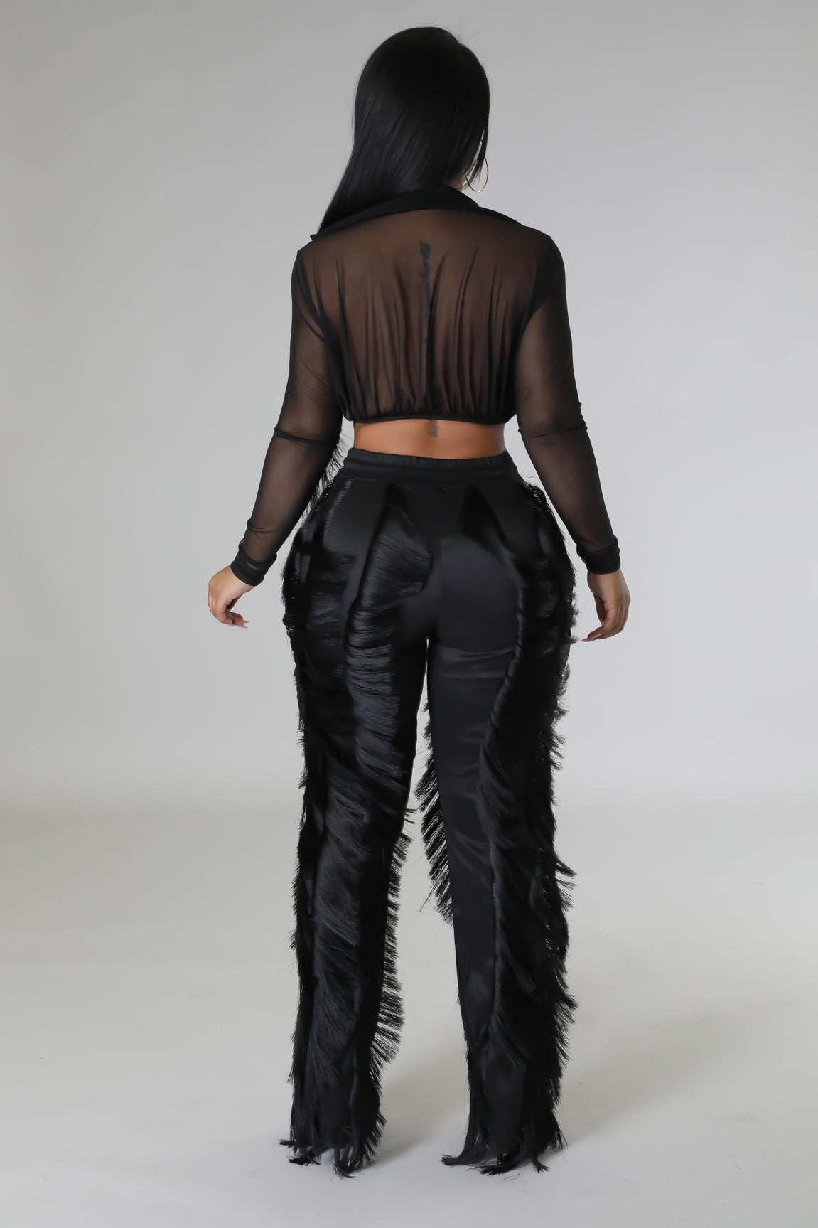 Tuotetyyppi: Pantalon noir Ruché avec Franges avec cordon ceinture