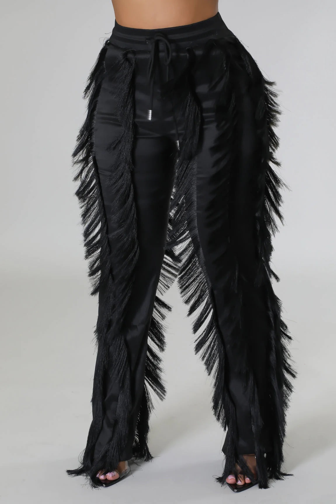 Pantalon taille haute ruché Franges avec cordon ceinture