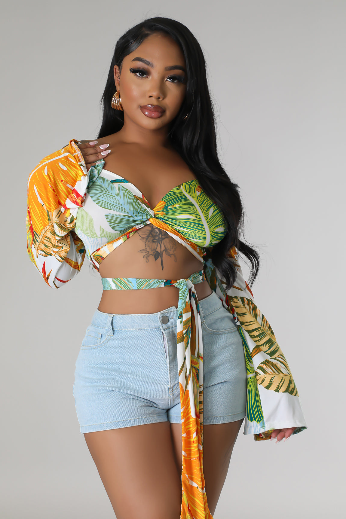* Haut court* Col en V* Manches longues* Détail de nœud* Taille à nouer* Pas de fermeture*...
