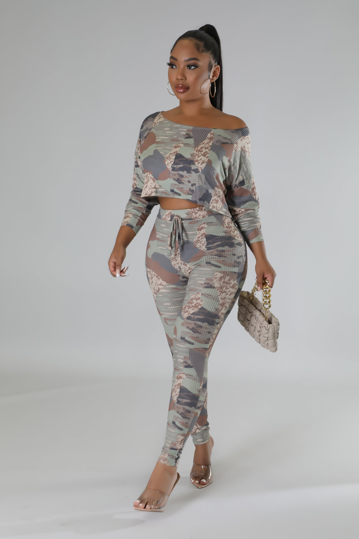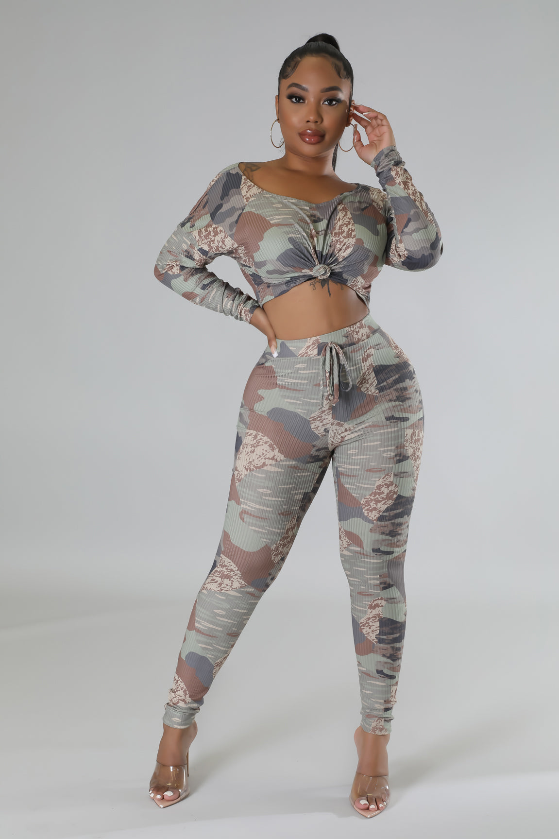 Ensemble deux pièces Haut court Encolure ronde Manches longues Nervuré Pas de fermeture Legging taille haute Ceinture...