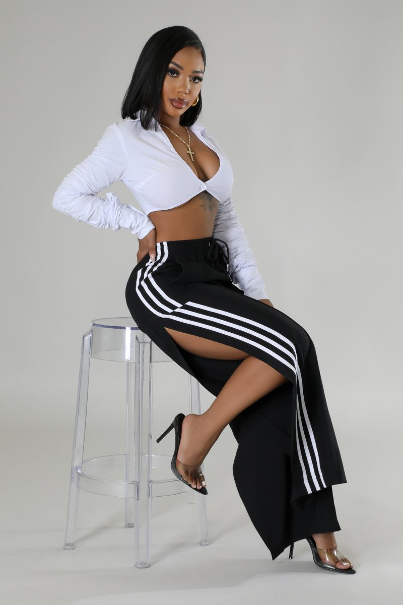 Pantalon extensible• Taille haute• Ceinture élastique• Cordons de serrage• Fentes latérales• L'entrejambe est de 34 pouces• 95...