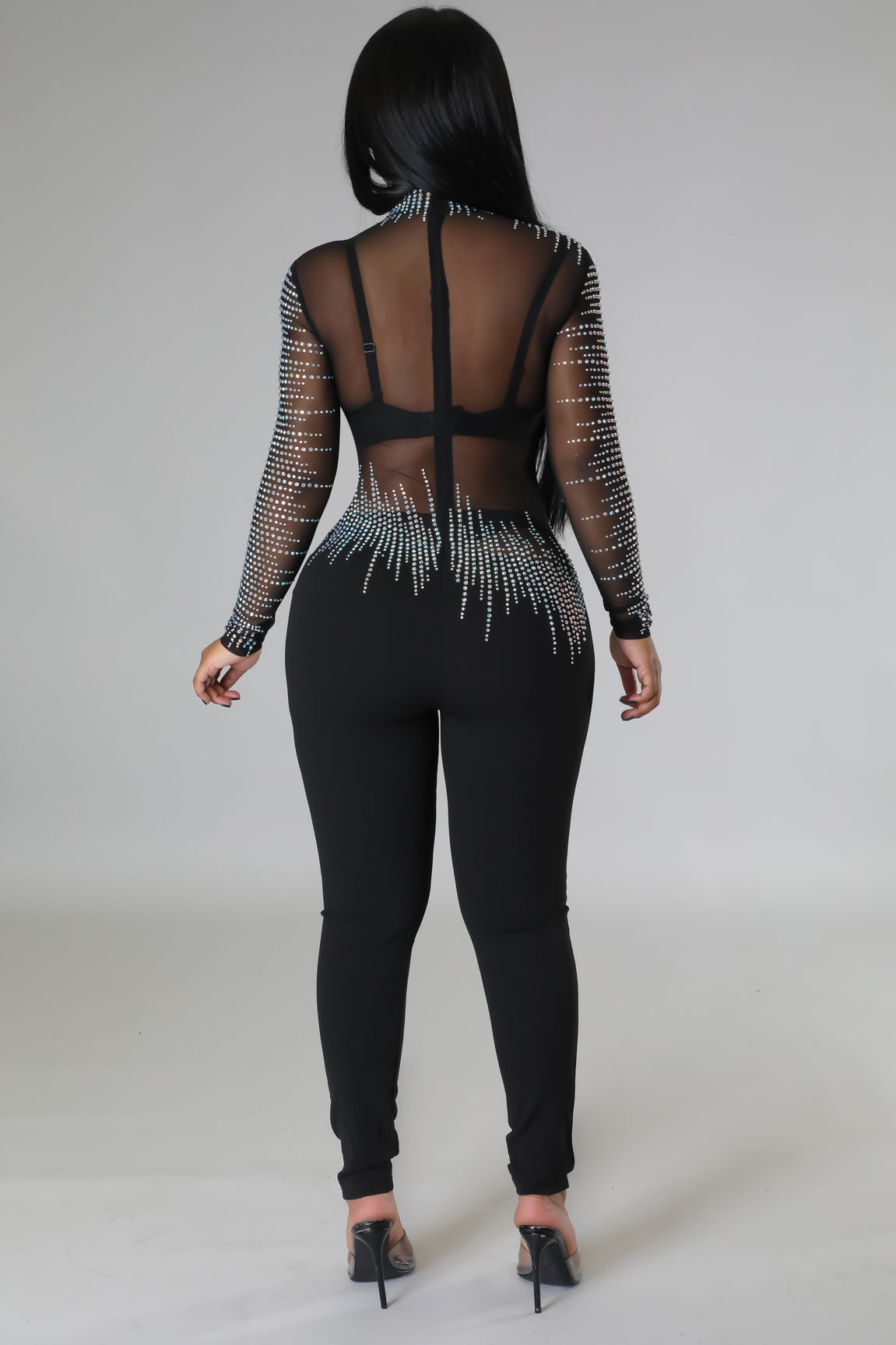 Combinaison sexy à strass demi-stretch avec fermeture derrière