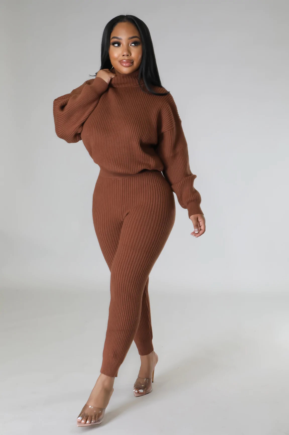 Type de produit : ensemble deux pièces tricot pantalon haut à col roulé