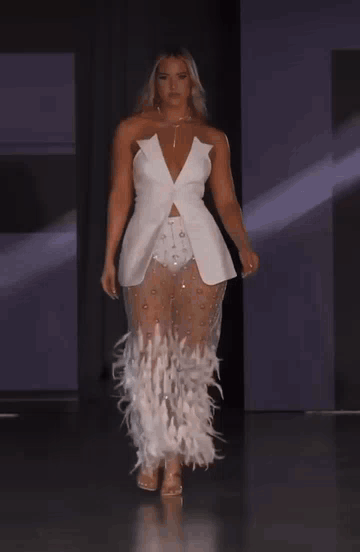 Allumez votre preneur de risques intérieur et faites une déclaration avec notre ensemble MIA. Cet ensemble jupe blanc audacieux et sexy comprend un haut licou blazer avec une sangle élastique transparente et une jupe en maille taille haute avec un superbe motif à paillettes et plumes et une fente dans le dos. Avec un insert de culotte attaché et une fermeture à glissière dans le dos, cet ensemble vous fera paraître et vous sentir confiante et élégante.