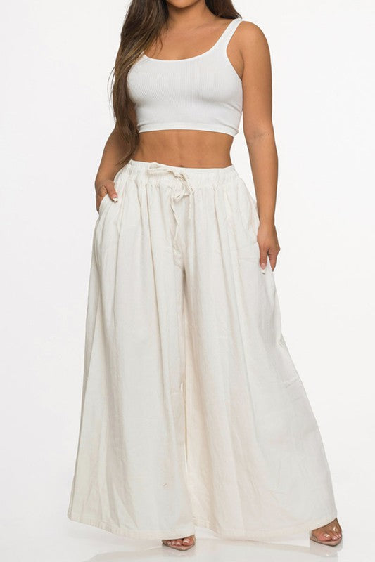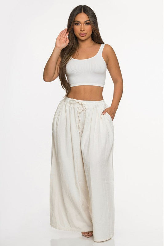 -Best seller - pantalon en jean à jambes larges avec taille élastique et cordon de serrage